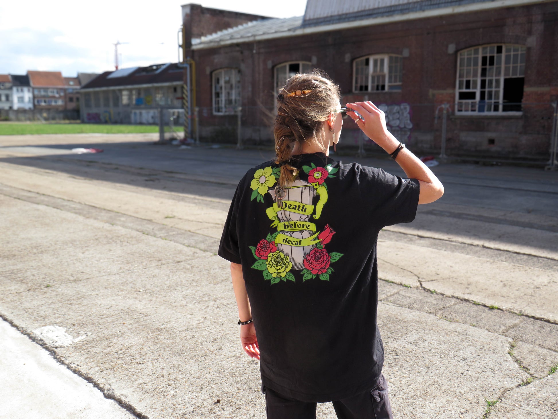 Coffee is life—especially the real stuff. Death Before Decaf blends your love for strong coffee with bold traditional tattoo art. This hand-drawn design features a classic percolator and floral accents in old-school American flash style.